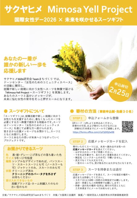 詳細はこちら:サクヤヒメ Mimosa Yell Project -スーツギフト|大阪商工会議所セミナー・イベント